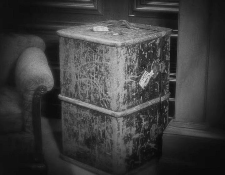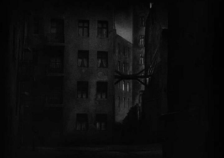 F. W. Murnau would still be applying the device into 1924. In The Last Laugh, a soft vignetting—the work of cinematographer Karl Freund—draws our eyes and our focus. The heavy suitcase in a room’s corner; Janning’s despair, clasping gloved hand to face; rain slicking down into the Berlin streets; his heavy-but-glad departure from the hotel where he has laboured and struggled and won.