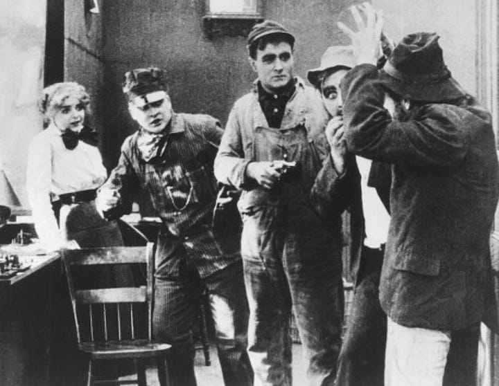 Elsewhere, this writer is right to celebrate The Lonedale Operator’s subtly emotive composition, where Griffith frequently places his characters “at the left of right edge of the frame, which creates a sense of imbalance and tension”. He also pushes his camera forward while Blanche Sweet taps furiously at her telegraph machine—better accentuating her mortal terror. We’re in the room with her.