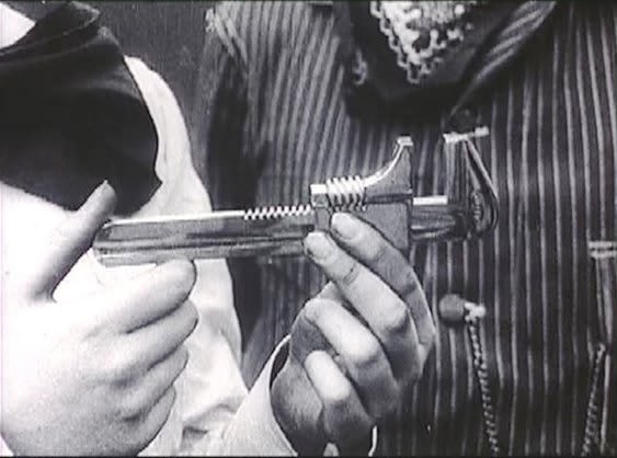 Later that year, Smith repeated the trick with a bit more thought put into its structure. As Seen Through a Telescope is a three-act flick whose story goes something like this: frock-coated professorial type pulls a telescope from his pocket, extends the mechanism, and takes a look around. He’s all attentiveness and curiosity. Now the inventive bit: we see what the rheumy old man is actually looking at through his lens; namely, a woman’s exposed calf and shoe, which a pair of hands—not her own—are fussily lacing up. G. A. Smith lets us have a good ogle before cutting back to the wide-angled street scene, whereupon our professor congratulates himself, takes a seat, and is subsequently knocked over by the irate lace-tying husband.