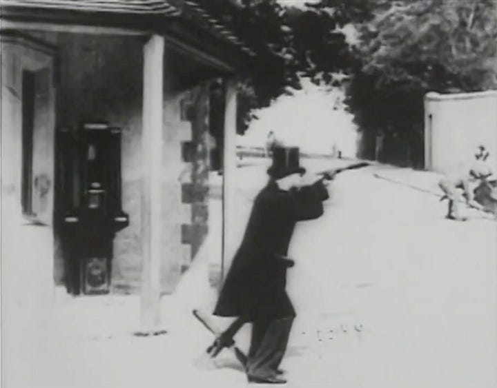It would fall to James Williamson, a Fife-born chemist and seller of photographic chemicals and equipment, to pick things up where Smith left off. If Smith was Méliès, Williamson was his Lumière—even if both of their names are often excluded from those grandiose, sweeping-style accounts of early film; though Mark Cousins at least gives Smith passing dues in his The Story of Film. Williamson gets a glance, too; but it isn’t held for long.