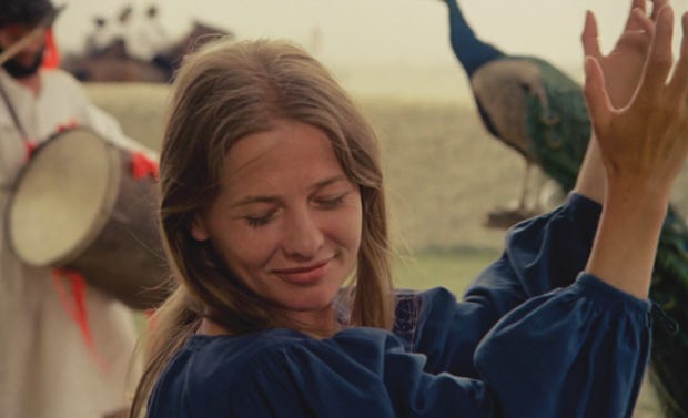 — For the past several weeks, I’ve continued to encounter films that offer various confrontations with Grecian antiquity. Jean-Daniel Pollet’s Méditerranée (1963), Piavoli’s Nostos: The Return (1989). A mesmeric memento mori, an imagistic psycho-drama. And now this, Miklós Jancsó’s Electra, My Love (1974), a thing that—on the surface—looks like a relatively po-faced retelling of Sophocles’ Electra. Dingy Google search results (try to keep your eyes closed) will tell you that this—vibrant and a bit naked—is a work of inflammation, of political allegory. Nested, subversive. Such things sound sexy. They are not very helpful.