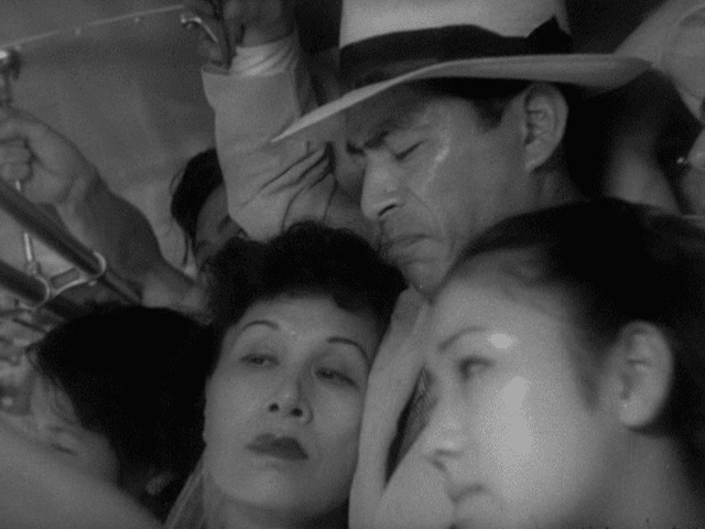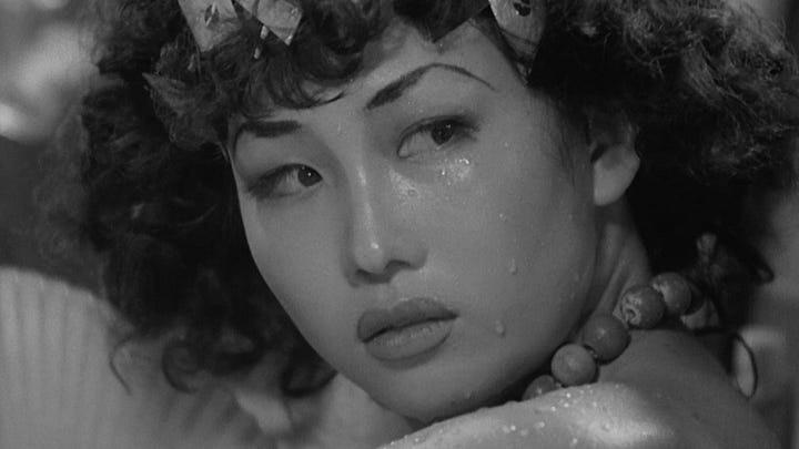 I’ve said a lot, but this might be the “big sweat” in brief: in the cinema of 1950s Japan, sweat—and heat—symbolized a new decadence and uneasiness in a society that was struggling to assert itself in the now (mostly) smoothed-over ruins of a devastating defeat. There is a sensuousness to all this sweating; a veritable pathetic fallacy that pushes youth, salarymen, cops, and housewives into “rumpled” outfits “drenched with sweat” (Catherine Russell’s treatment of classical Japanese cinema is quick to pick up the allegorical quality of all this inclement weather).